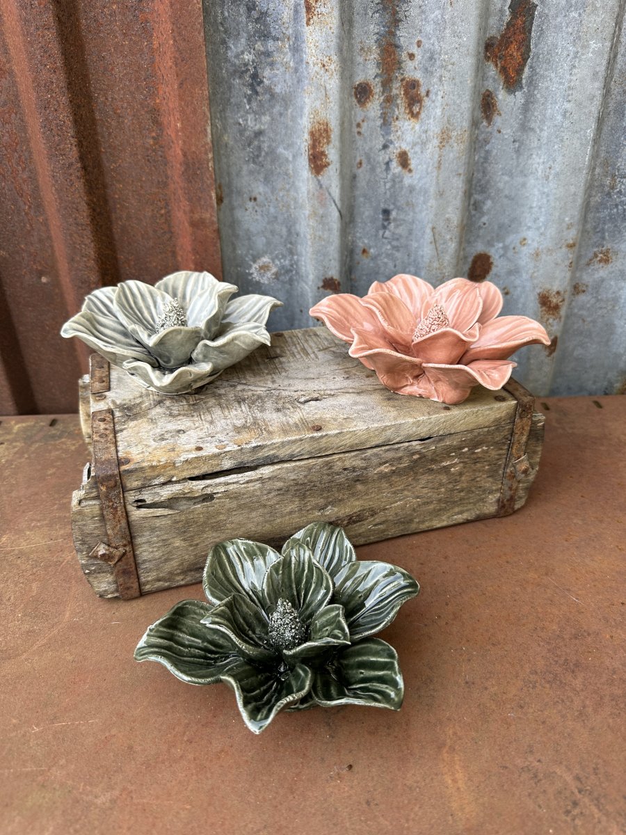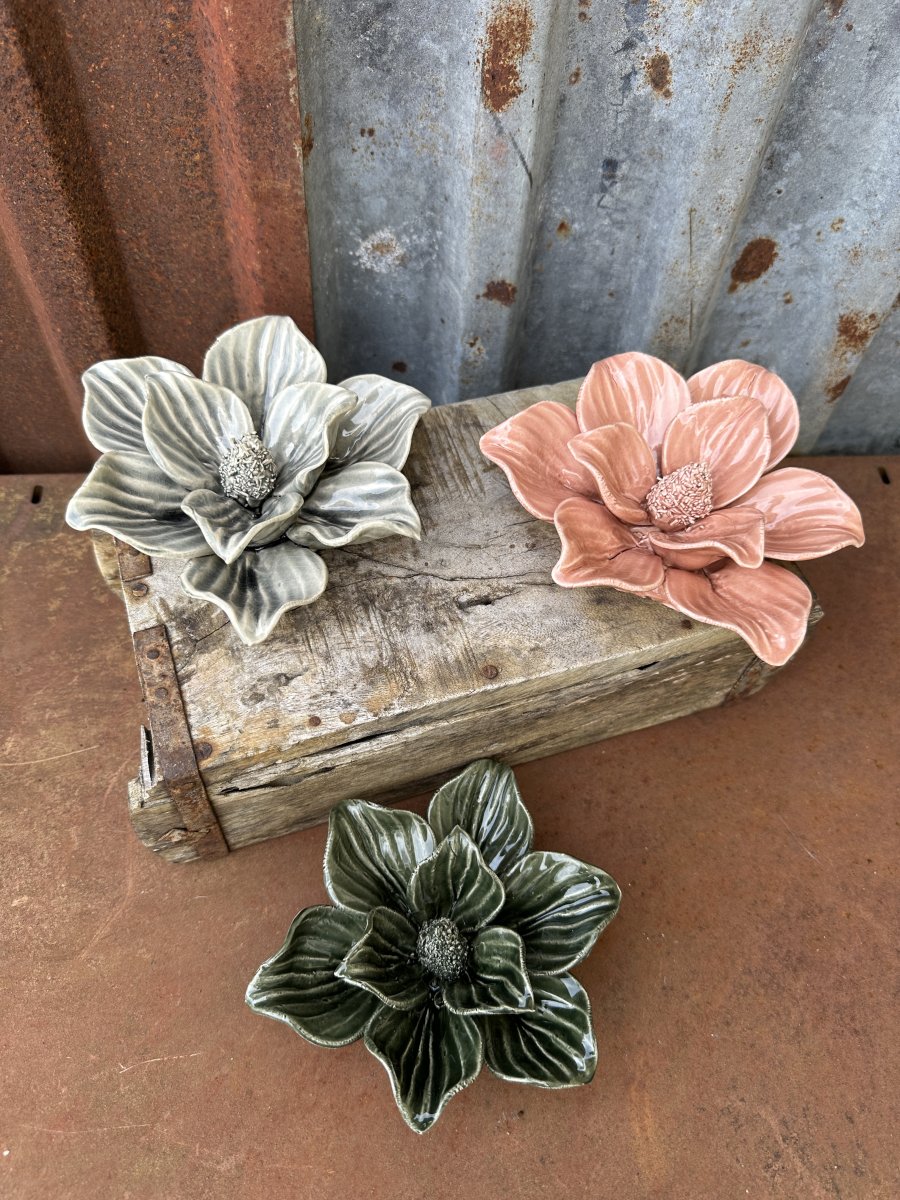 Vacker och elegant blomma " Magnolia" i porslin att dekorera med. Finns i tre nyanser