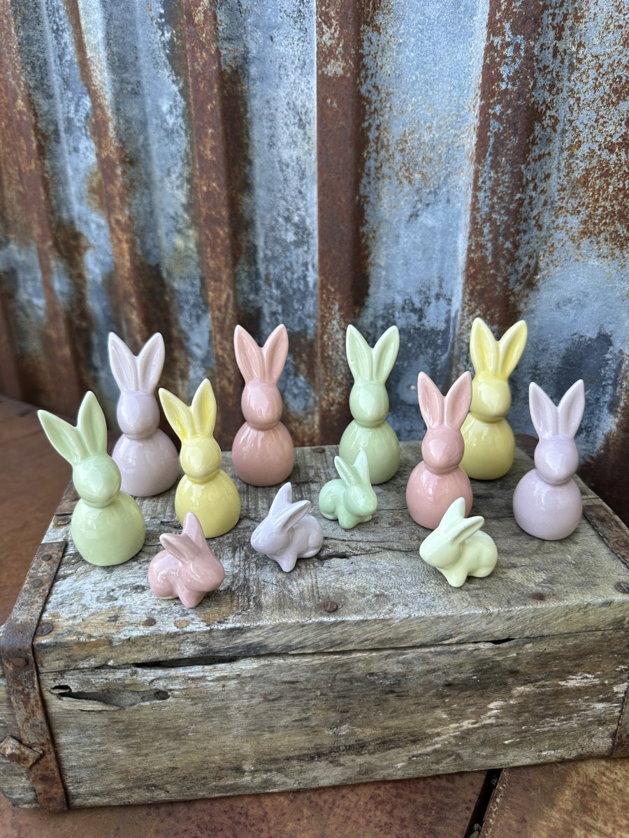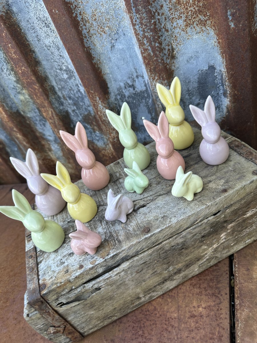 Färgglad kanin i porslin finns i tre olika storlekar och fyra olika nyanser
