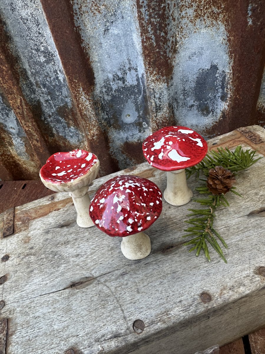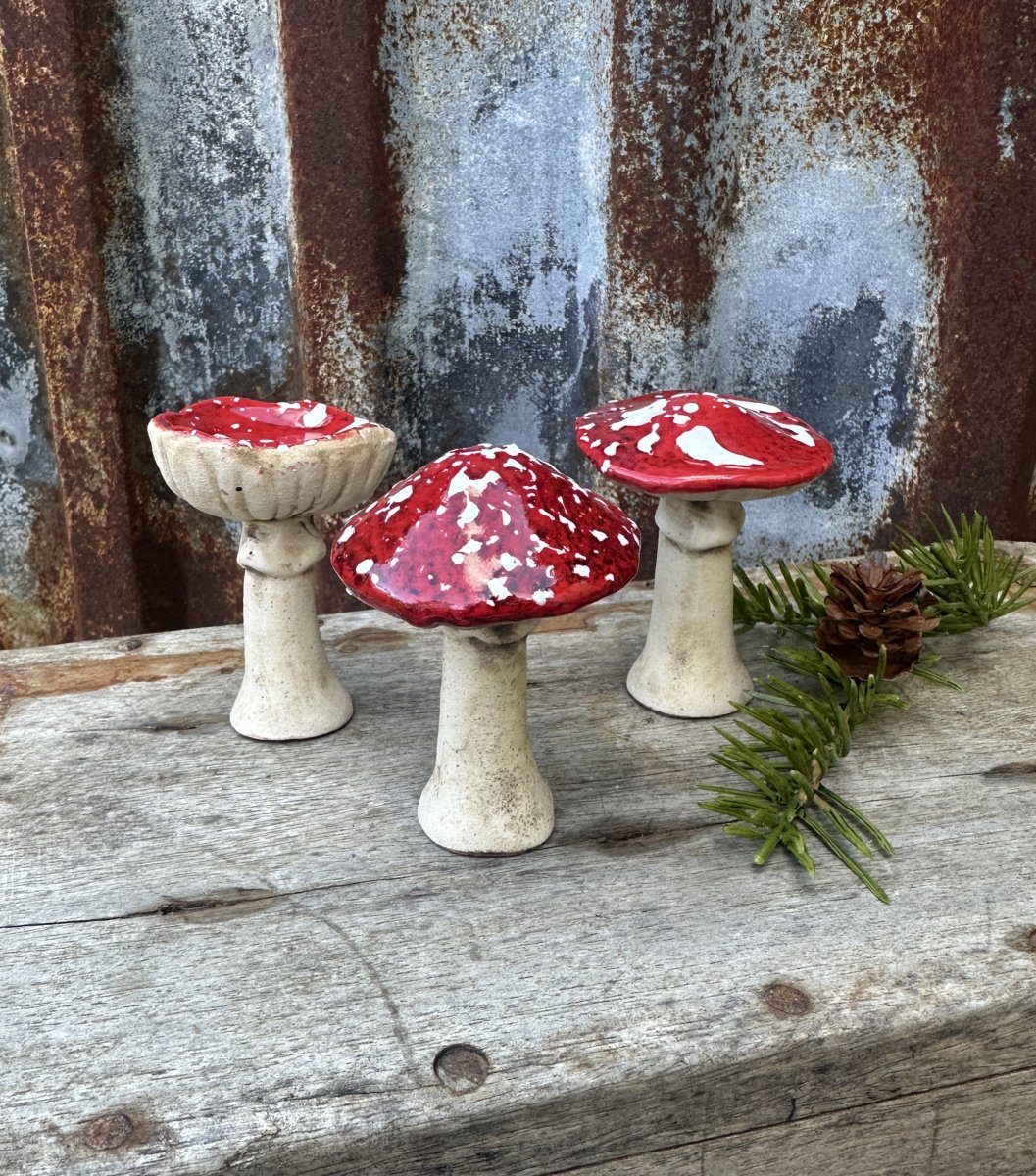 • Svampar i porslin med färgat hatt