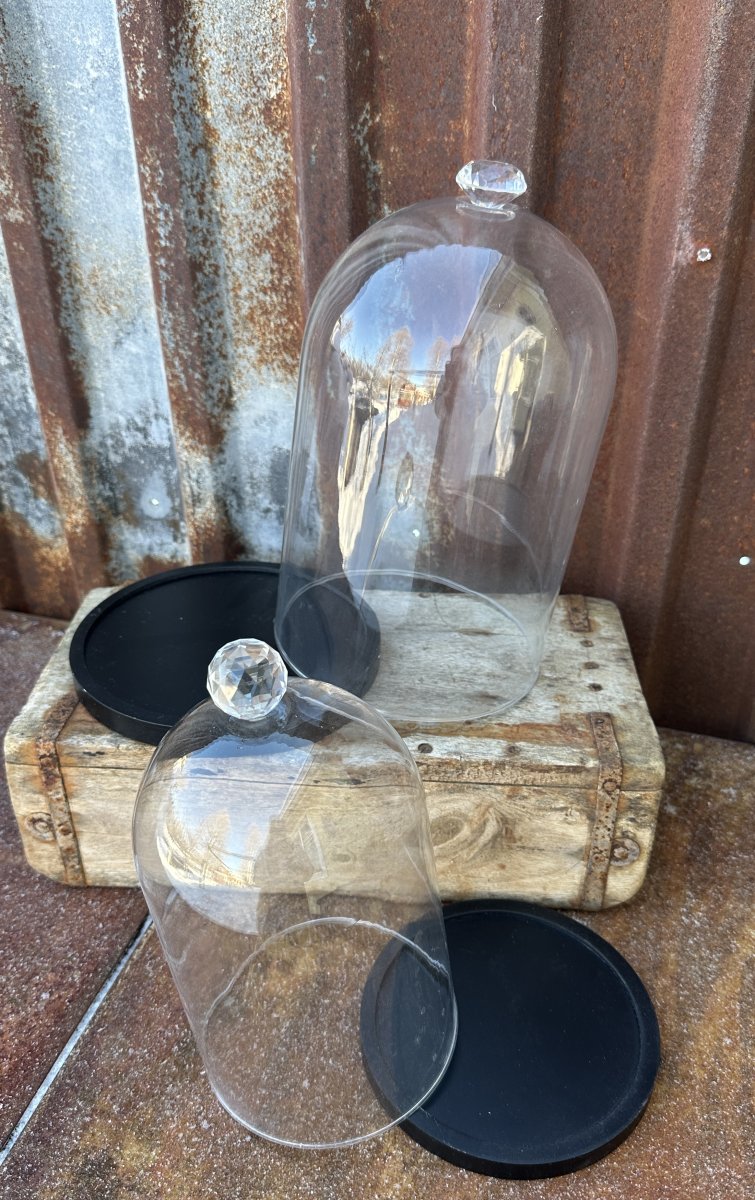 Glaskupa / glasklocka på fat med diamant knopp