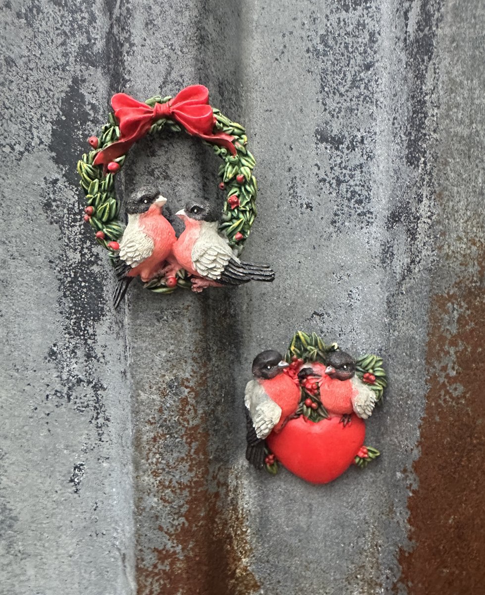 Magnet / kylskåpsmagnet med domherrar. Dekorerad modell i fina nyanser. Finns i två modeller