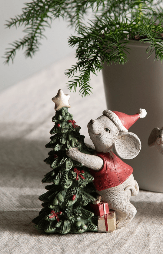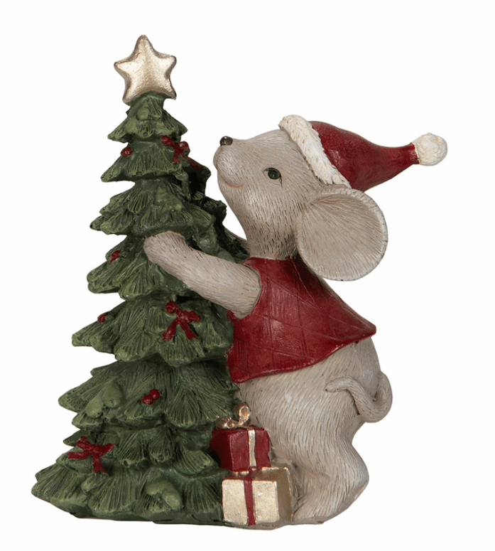 Gullig och söt jul mus med julgran. Detaljfull och välarbetad att dekorera med. Söta och fina detaljer runt om. I fina jul inspirerade nyanser.