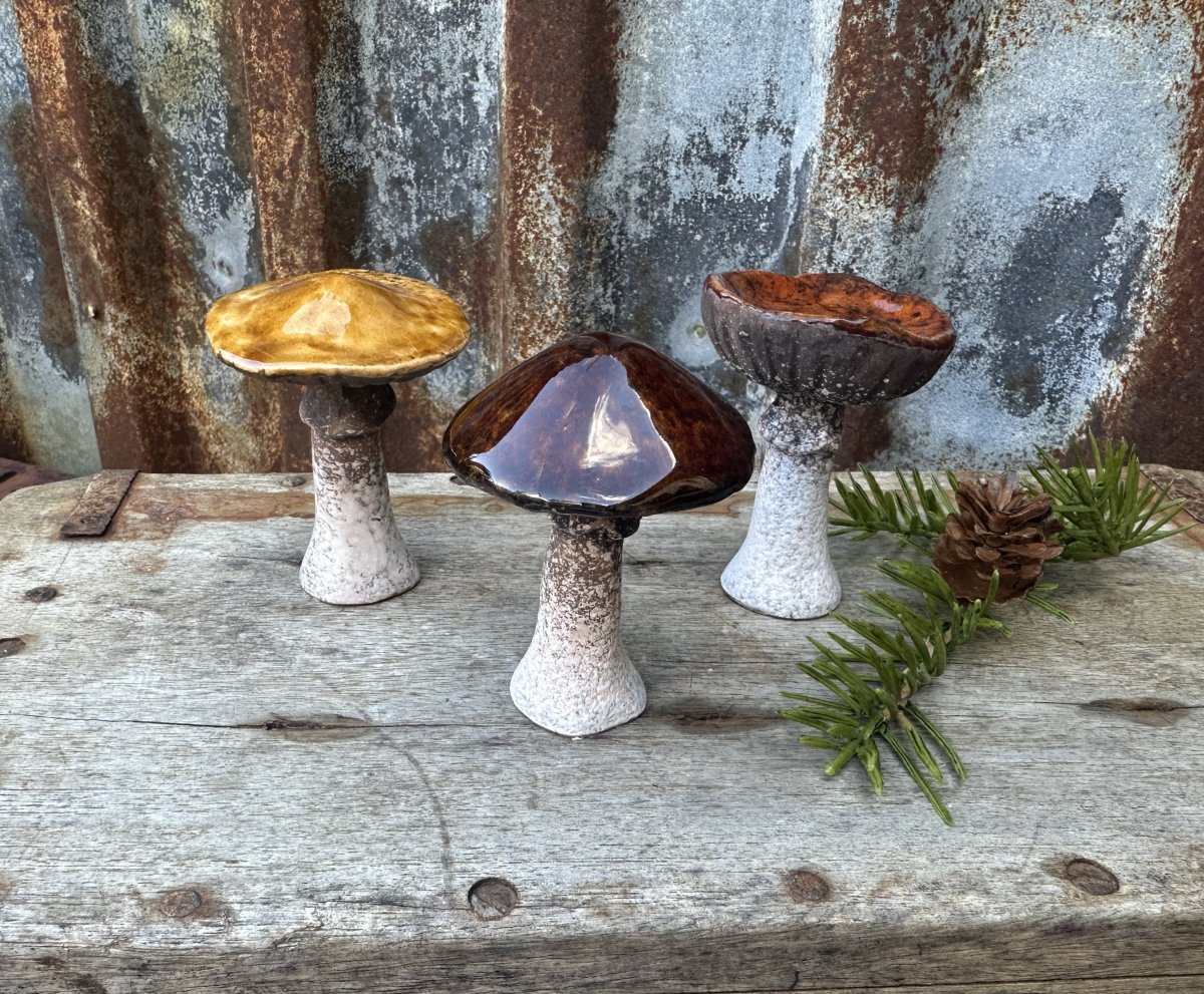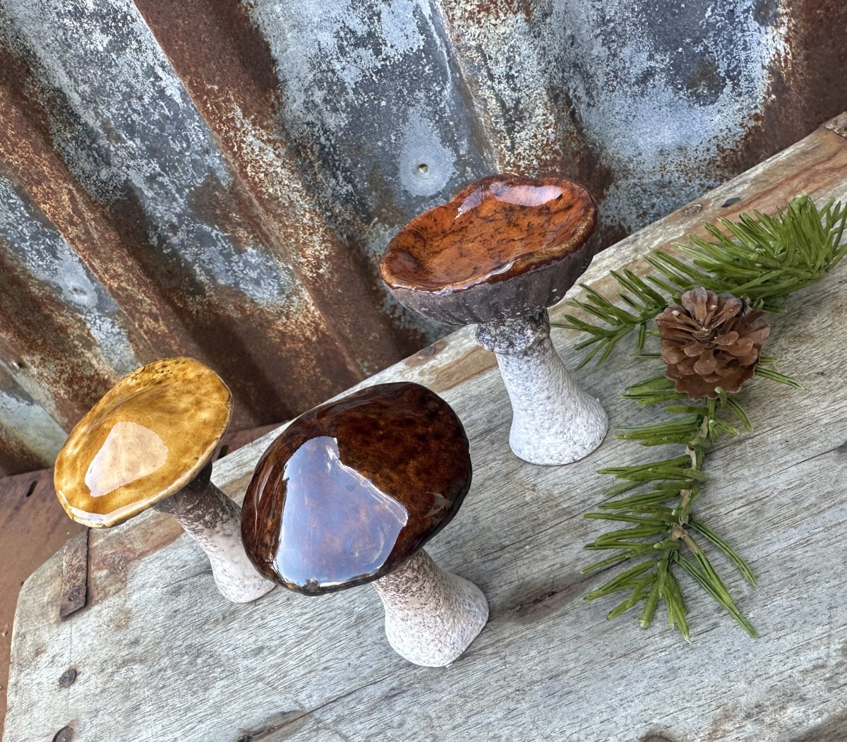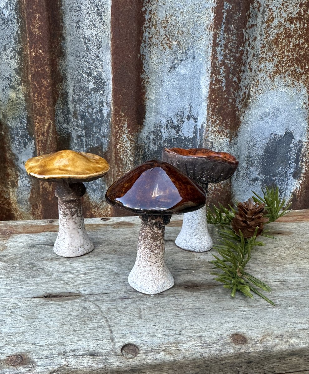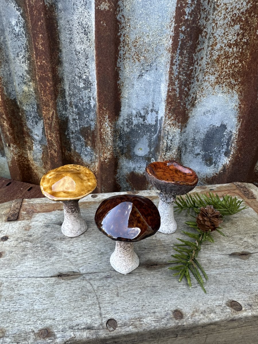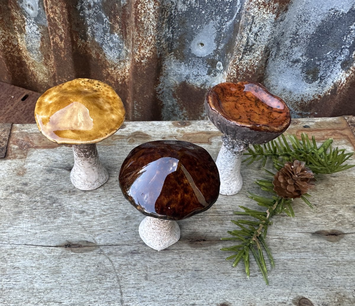 Svamp i porslin med färgad brun hatt att dekorera med.