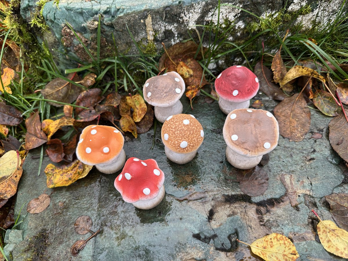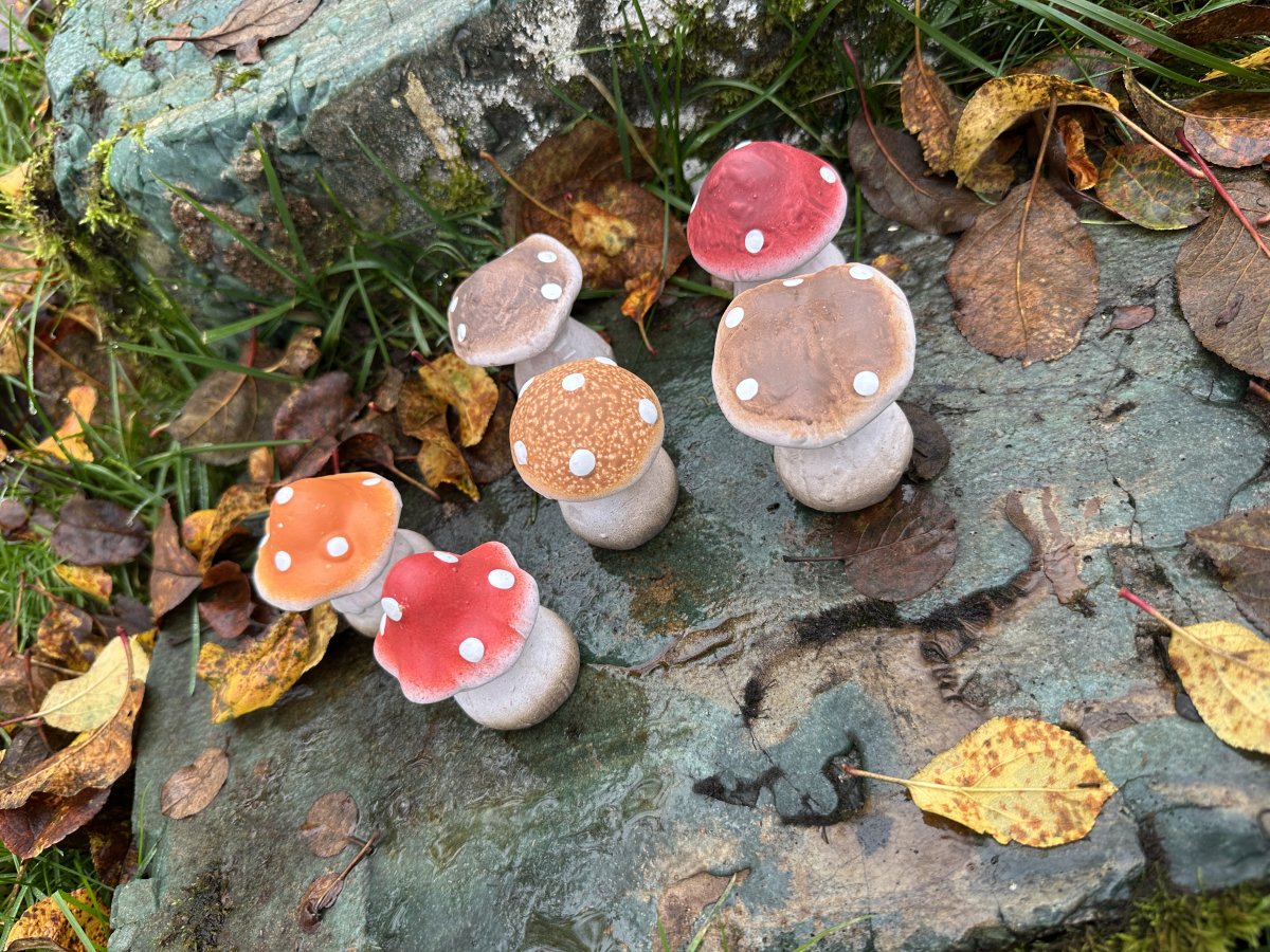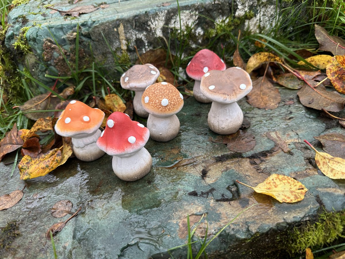 Söt svamp med färgad hatt att dekorera med. Lite mindre i modellen och finns i sex olika utföranden.