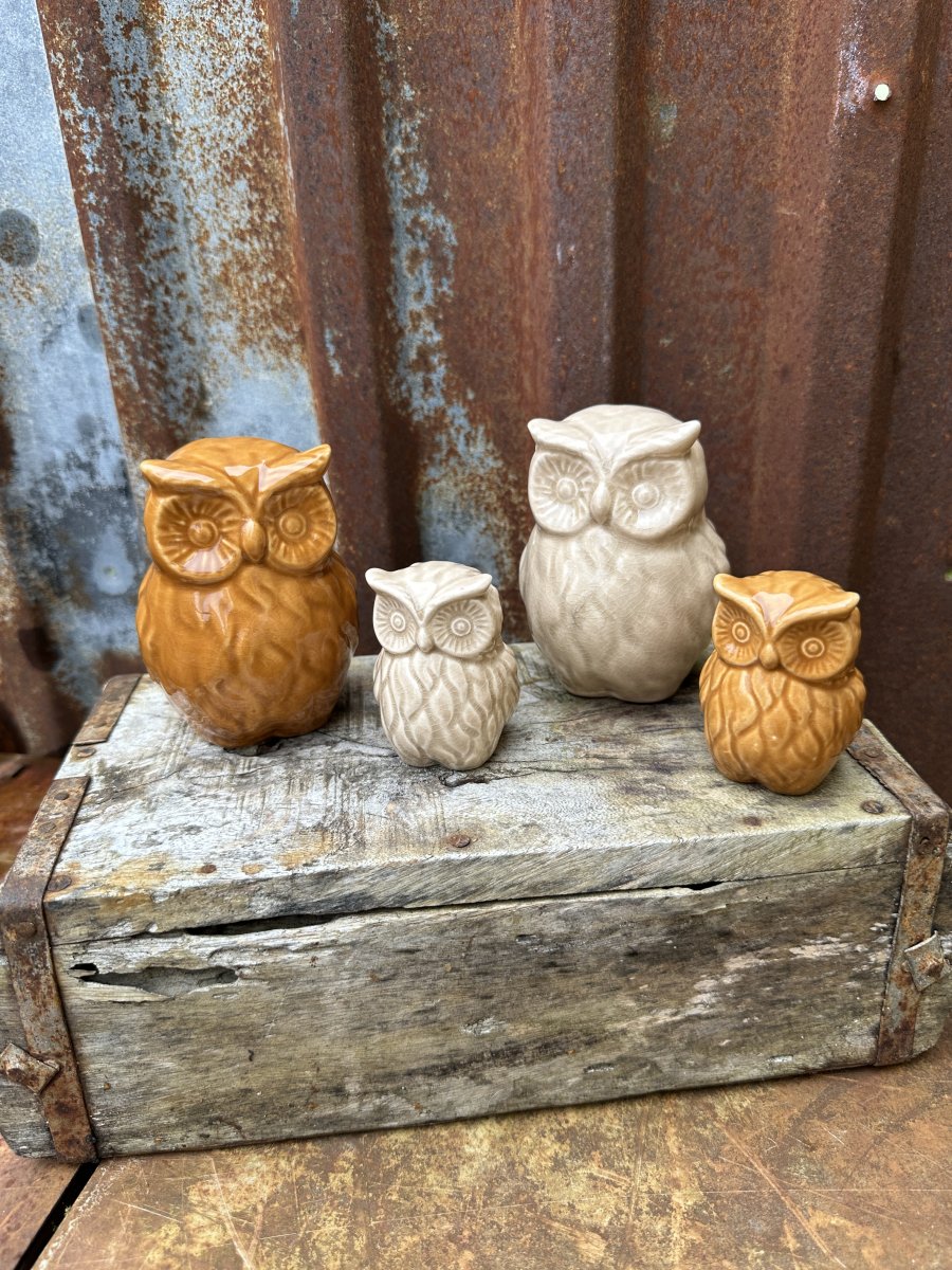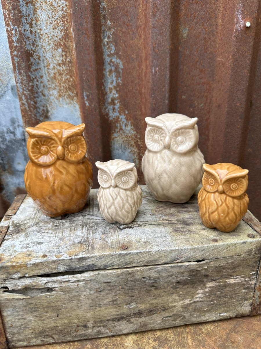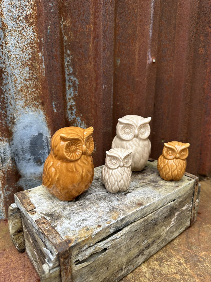 Vacker uggla i porslin att dekorera med. Finns i två nyanser och två storlekar.