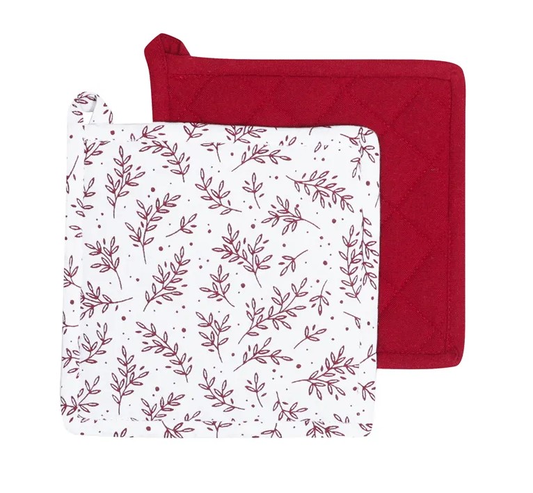 Grytlapp Flora vita och röda nyanser med fint mönster. Tillverkad i återvunnet textil material. Lätt stoppas så den passar perfekt att ta heta grytor och plåtar med. Passar lika bra till bakning som matlagning.