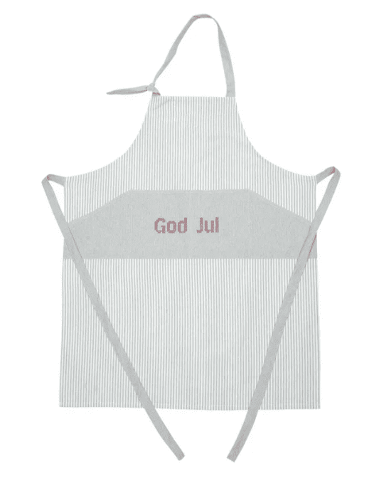 Vackert grått förkläde med broderat God Jul i rött. Fin modell som finns i två modeller