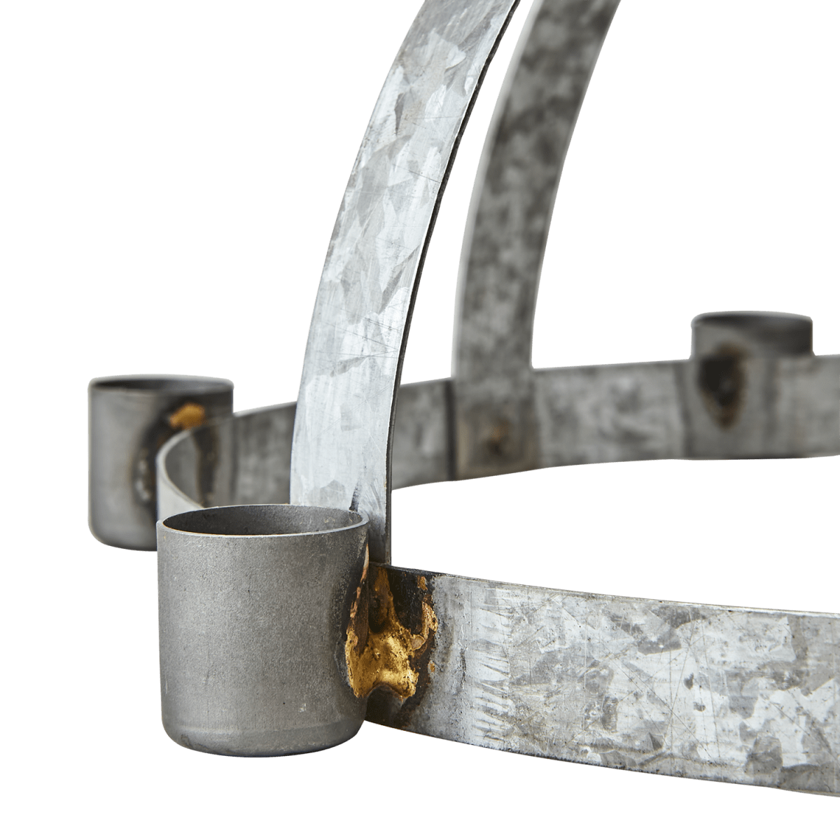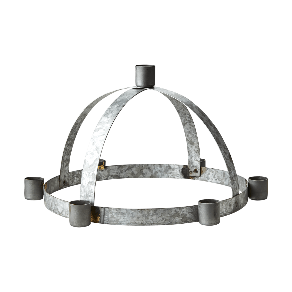 Gammeldags inspirerad luciakrona Lucia i zink. Elegant och klassisk ljusstake för vanliga ljus "kronljus". Lika vacker som den är som att klä med en girlang av gran eller liknande. Matt och ruffig i zink ytan.