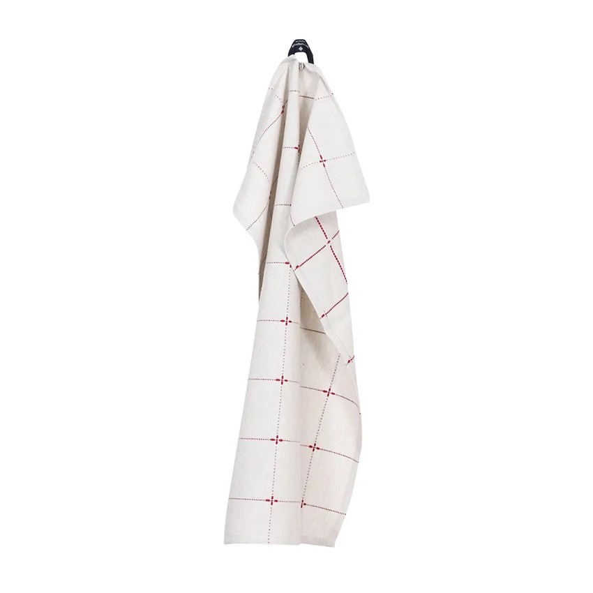 Kökshandduk Mia i linne chambray och röda inslag