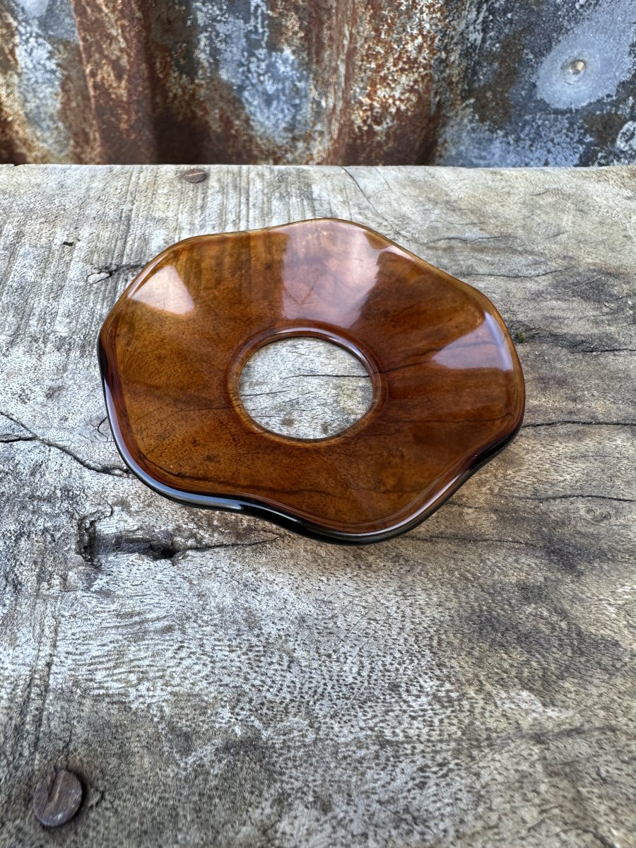 Ljusmanschett i brunt glas, rundad modell med vågad kant. Vacker klassisk elegant modell.