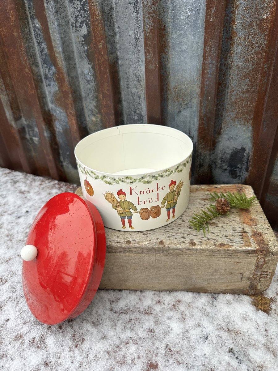 Plåtburk Knäckebröd med gammeldags motiv och text