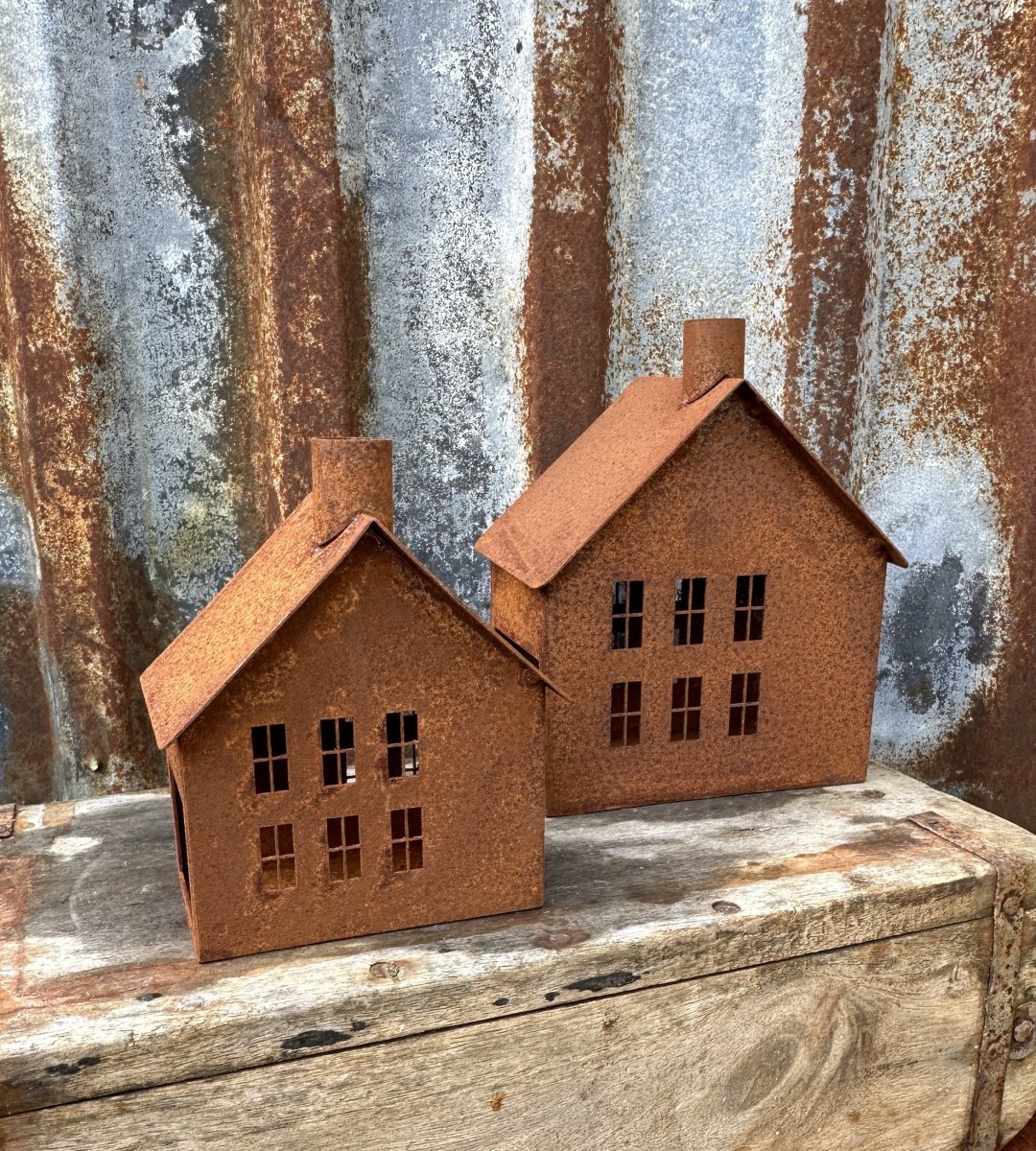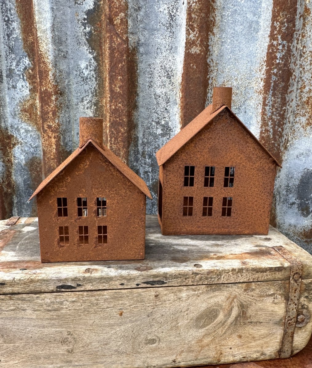 Hus "ljushus" / dekorations hus i rost. Med öppning på baksidan för tex ljus eller en ljusslinga. Finns i två storlekar