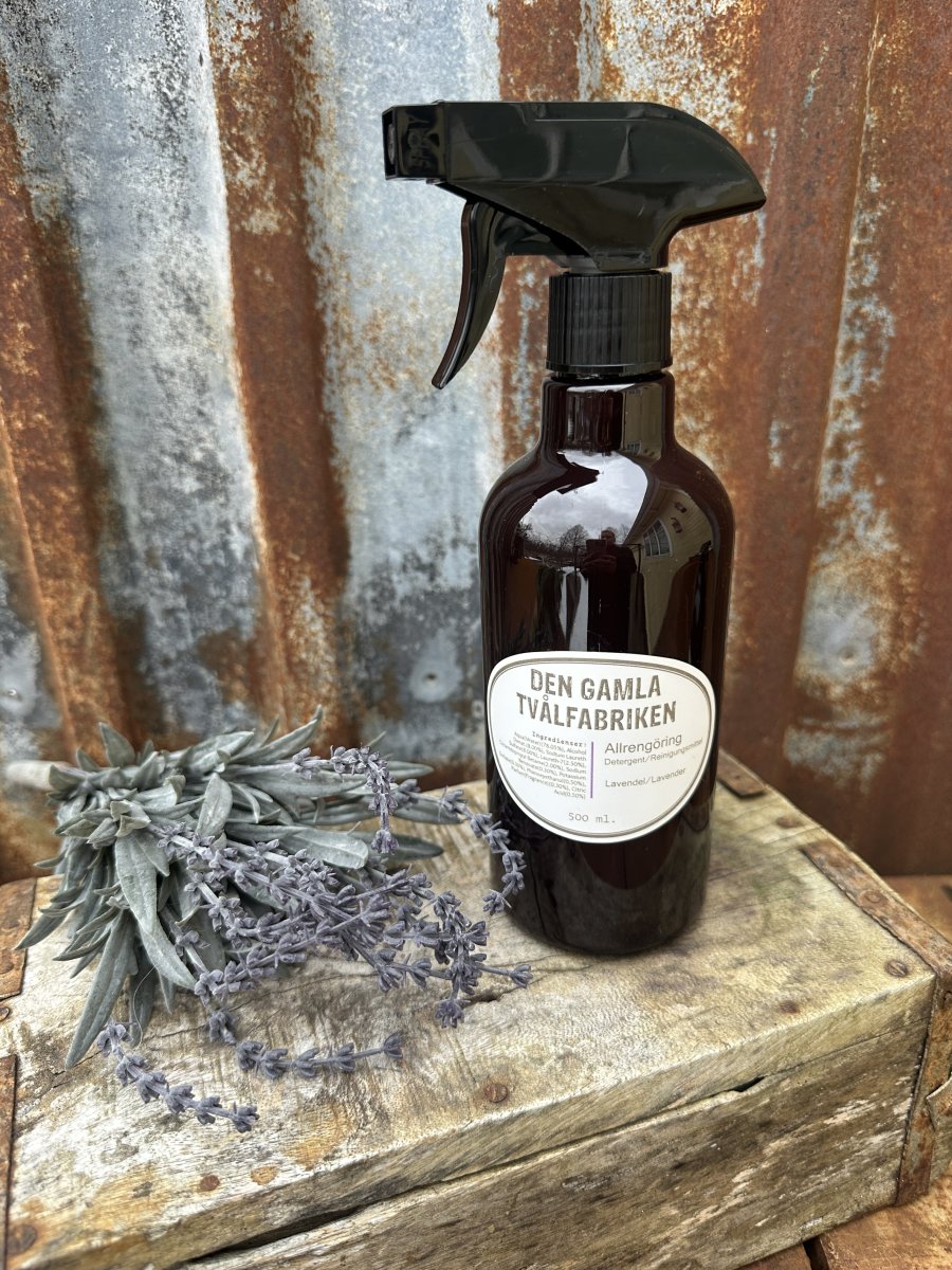 Allrengöring med en mjuk doft av lavendel. I praktisk spray flaska från den gammal tvålfabriken.