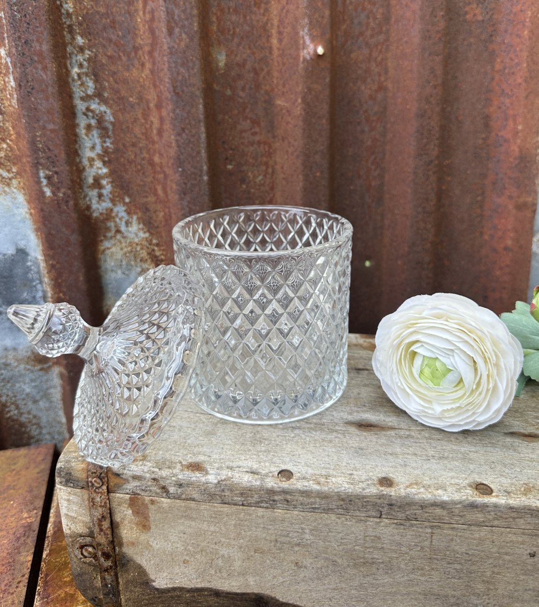 Glasskål med lock modell diamant