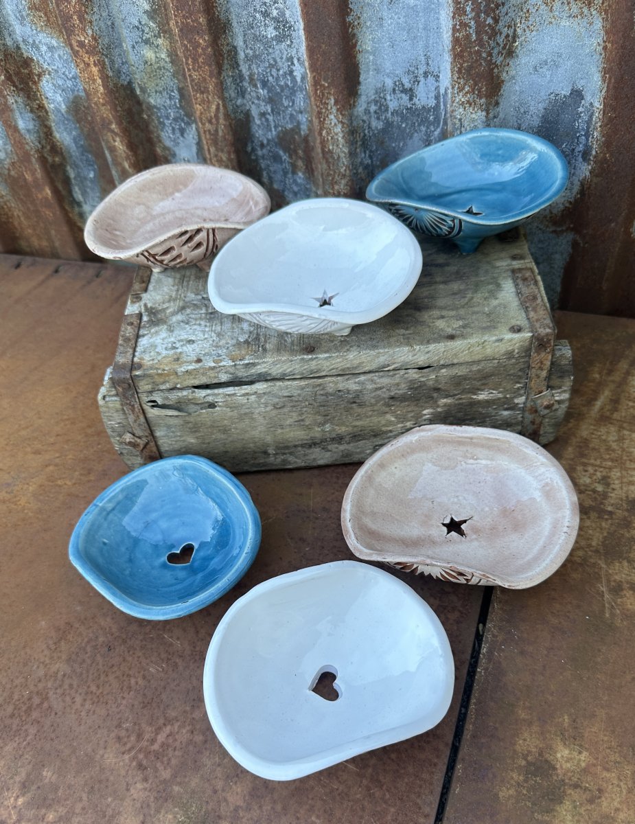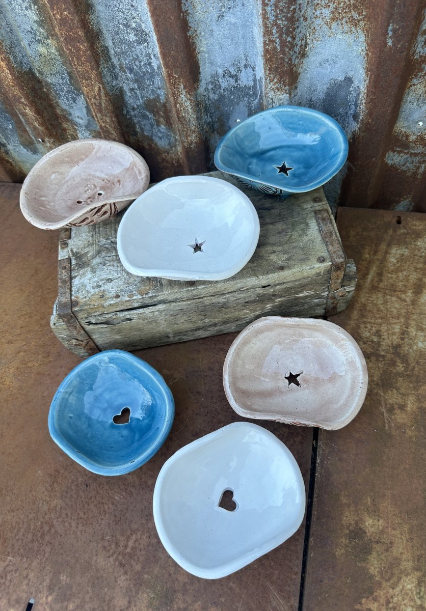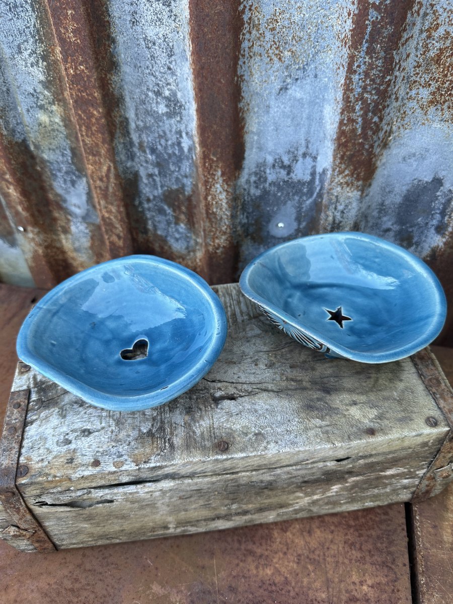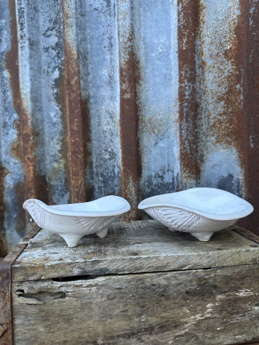 Vacker handgjord skål i spanskt lergods. En unik vacker lätt skålformad modell på tre tassar. Passande till tex tvålkopp. Finns i flera modeller