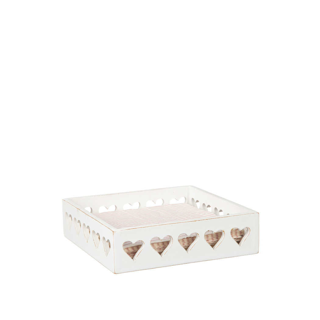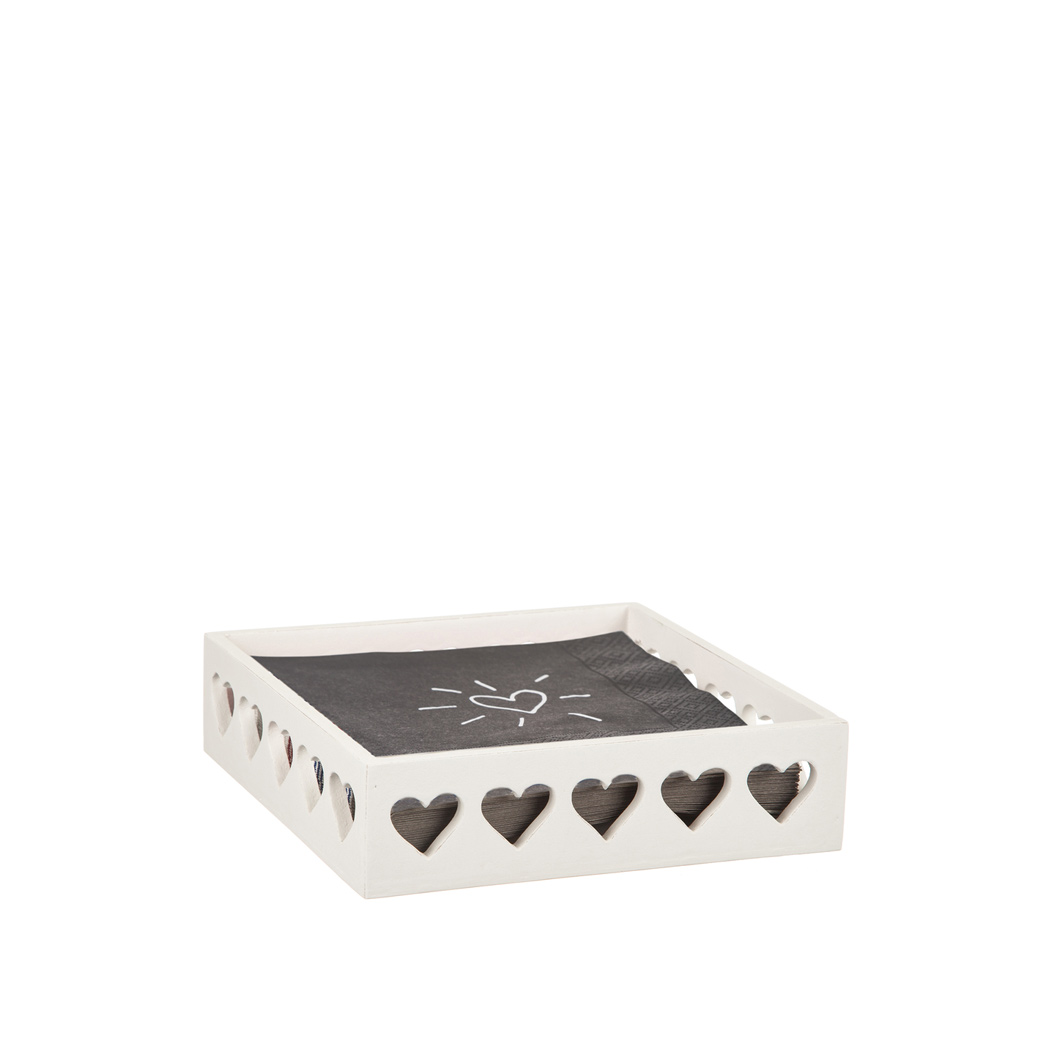 Vit trälåda / servettställ med hjärtan