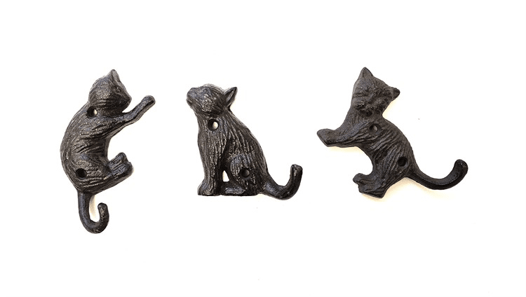 Söt krok formad som en katt. Tillverkad i gjutjärn och finns i tre olika modeller.