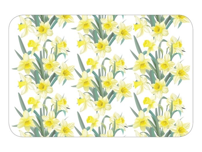 Bordstablett påsk med gula påskliljor. Detaljrikt och välarbetat motiv i fina färger. Bordstablett i lite tunnare modell.