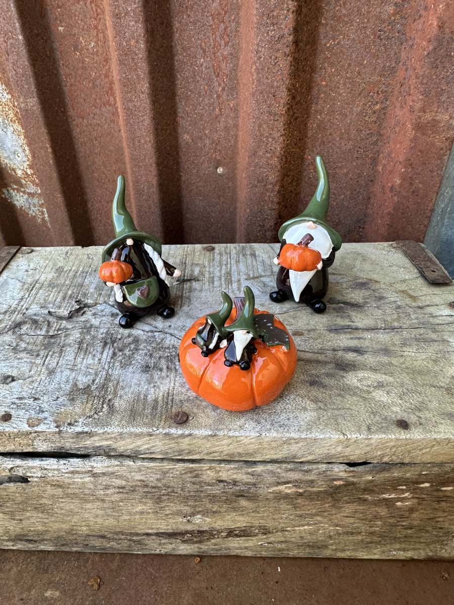 Egon och Asta med höst pumpa. Söta och dekorativa figurer med många detaljer .Finns i tre modeller