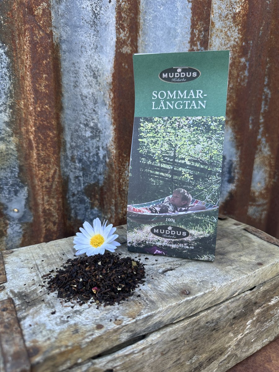 Svart Te Sommarlängtan med smak av bla fläder och äpple Ett smakfullt te med mycket sommar smak och doft från MUDDUS i Kolarbo.