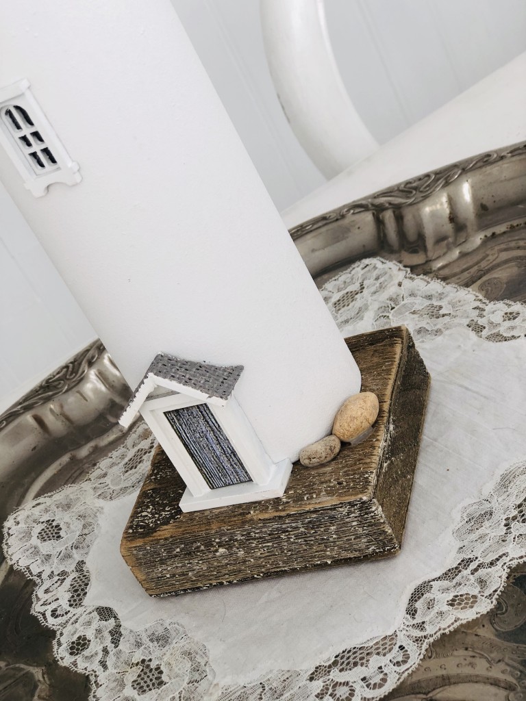 Hakens fyr vacker verklighetstrogen design med belysning inuti. Att dekoration med . Går i vitt med natur inslag . Modellen är rund med kantig platta. Batteridriven med av och på knapp . Höjd: 39cm Bredd: 10cm